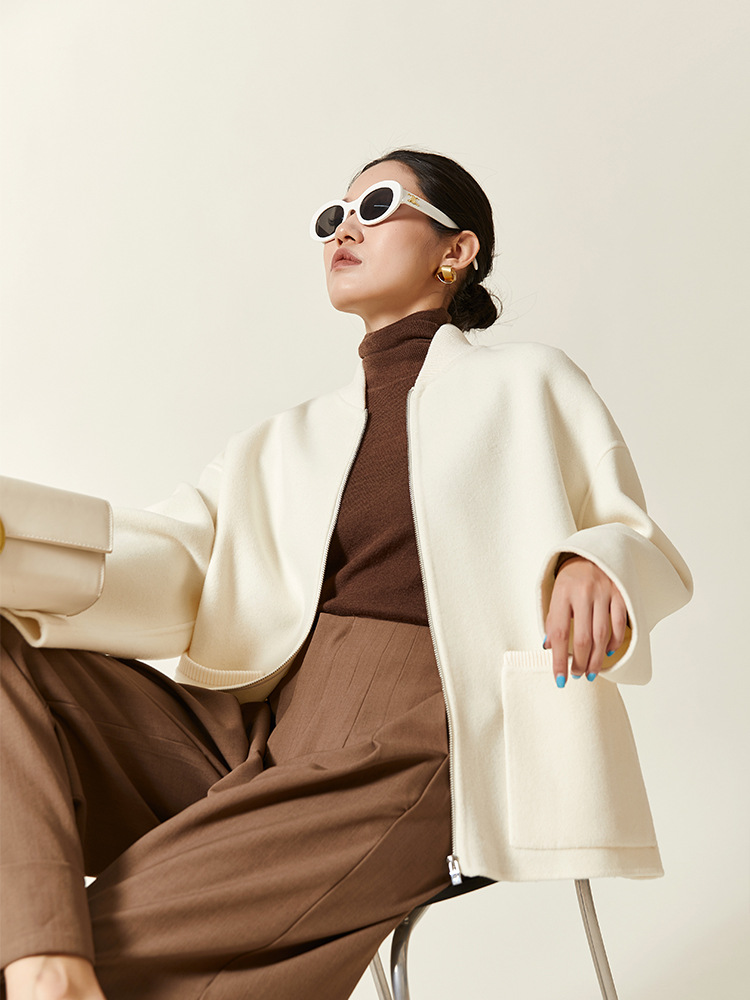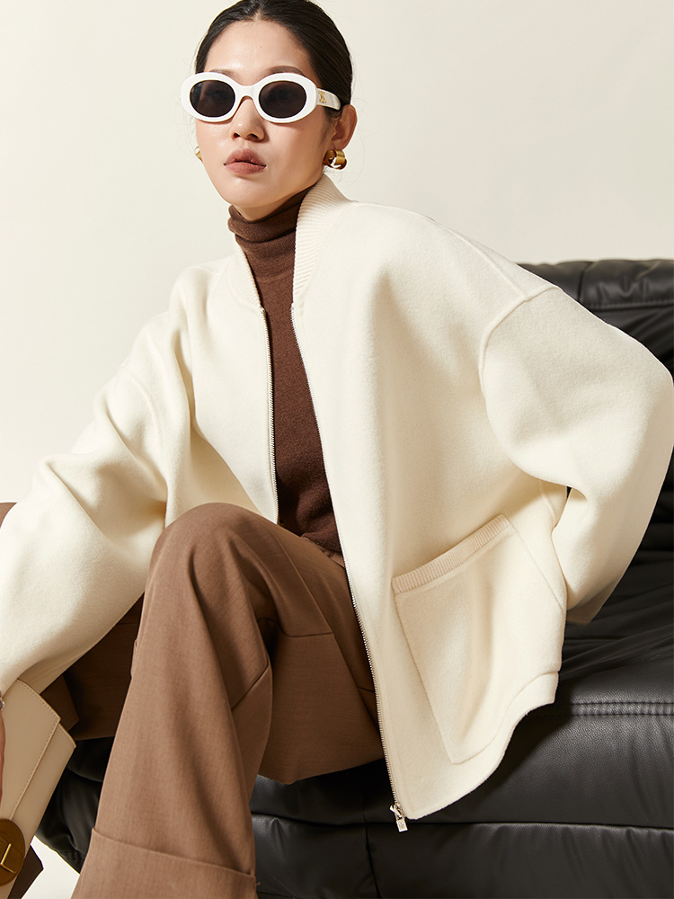 Age-reducing baseball wool coat stand collar wool short jacket top