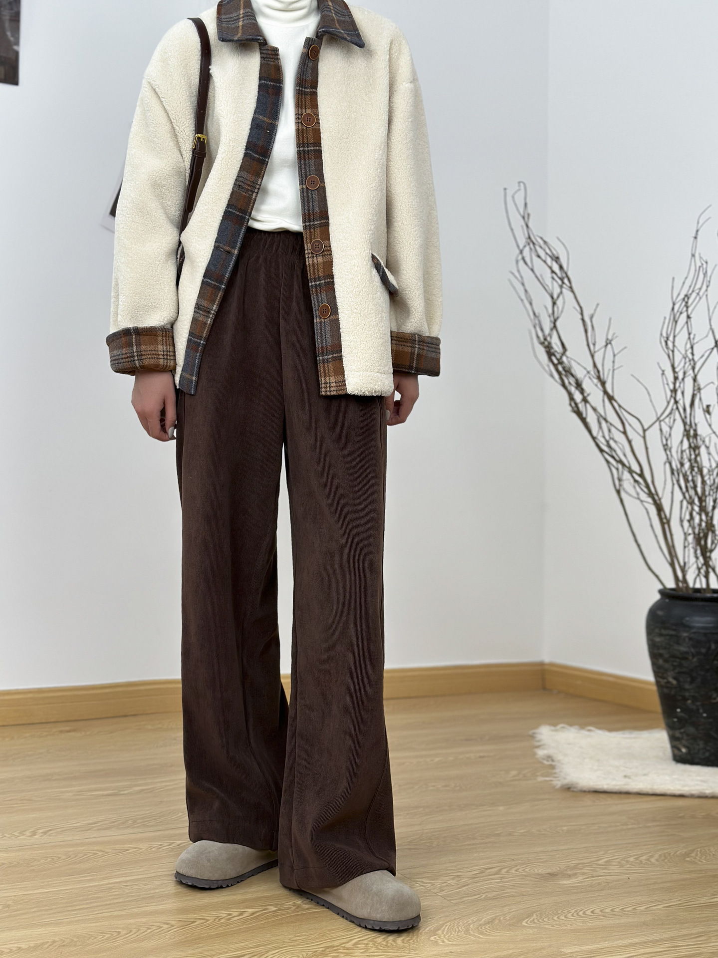 - Product Name: Brown vintage corduroy knit casual wide-leg pants for women autumn winter