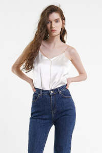 - Product Name: Flash Sale White Satin Chain Strap Bar Pendant Detail Cami Top