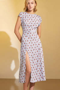 - Product Name: Light Steel Blue Cut-Out Slit Floral Midi Dress
