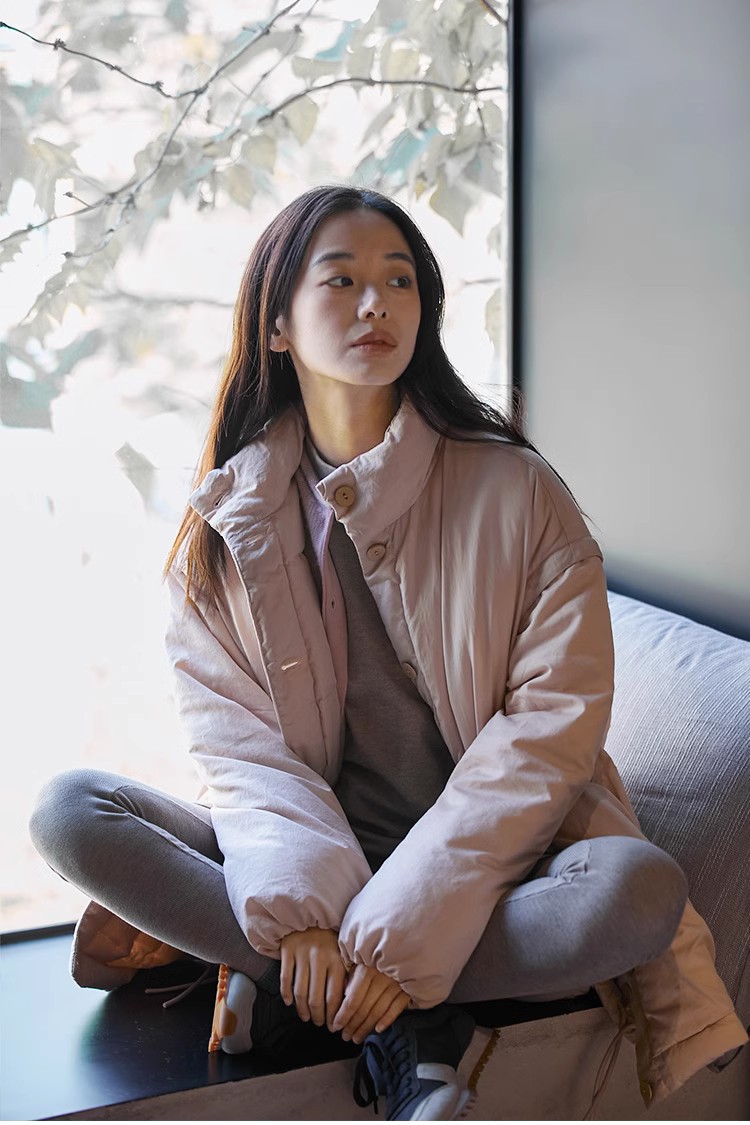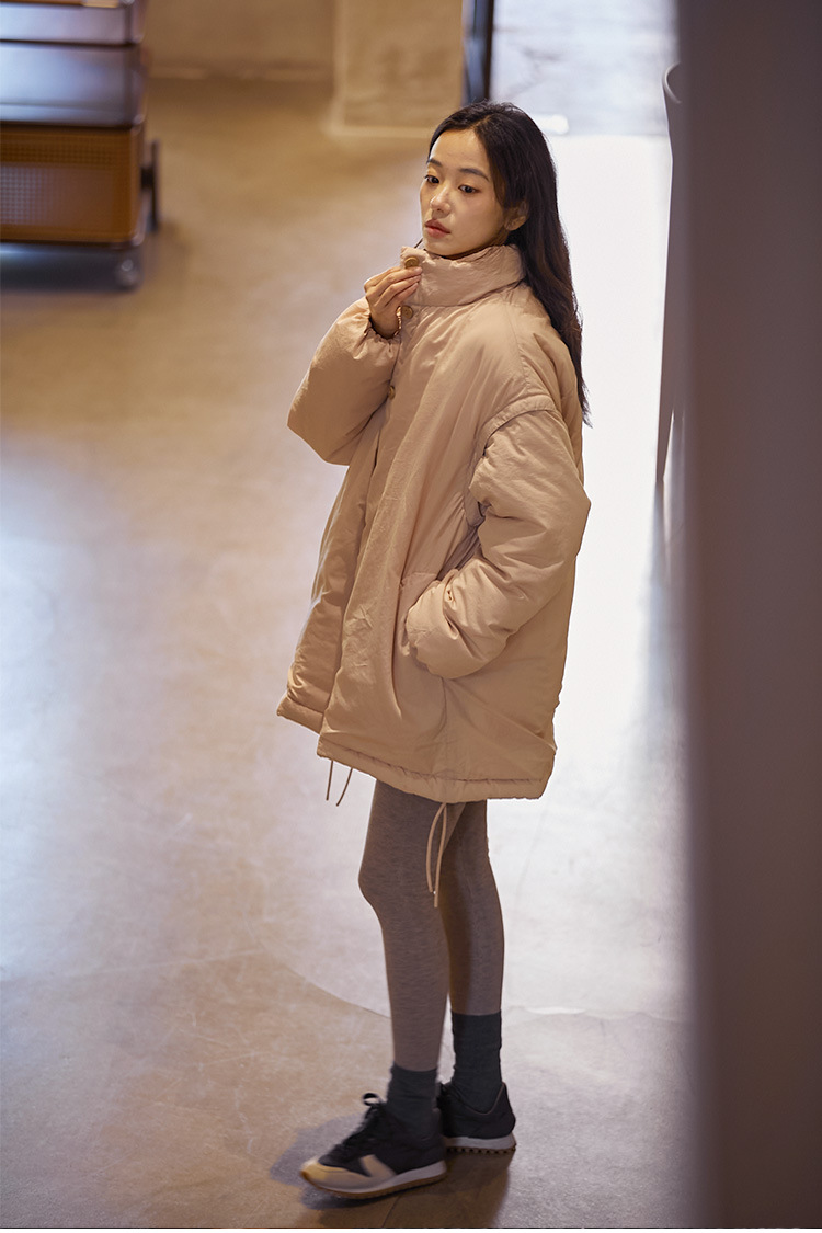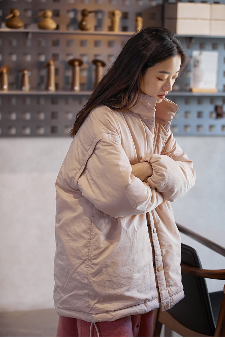 - Product Name: New winter nude pink cotton mid-length loose down jacket with removable sleeves