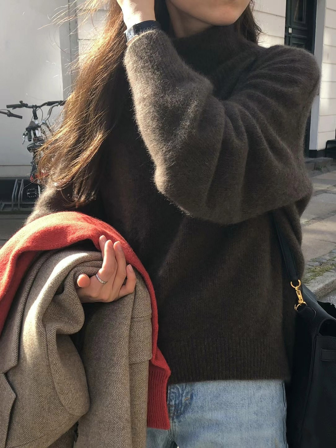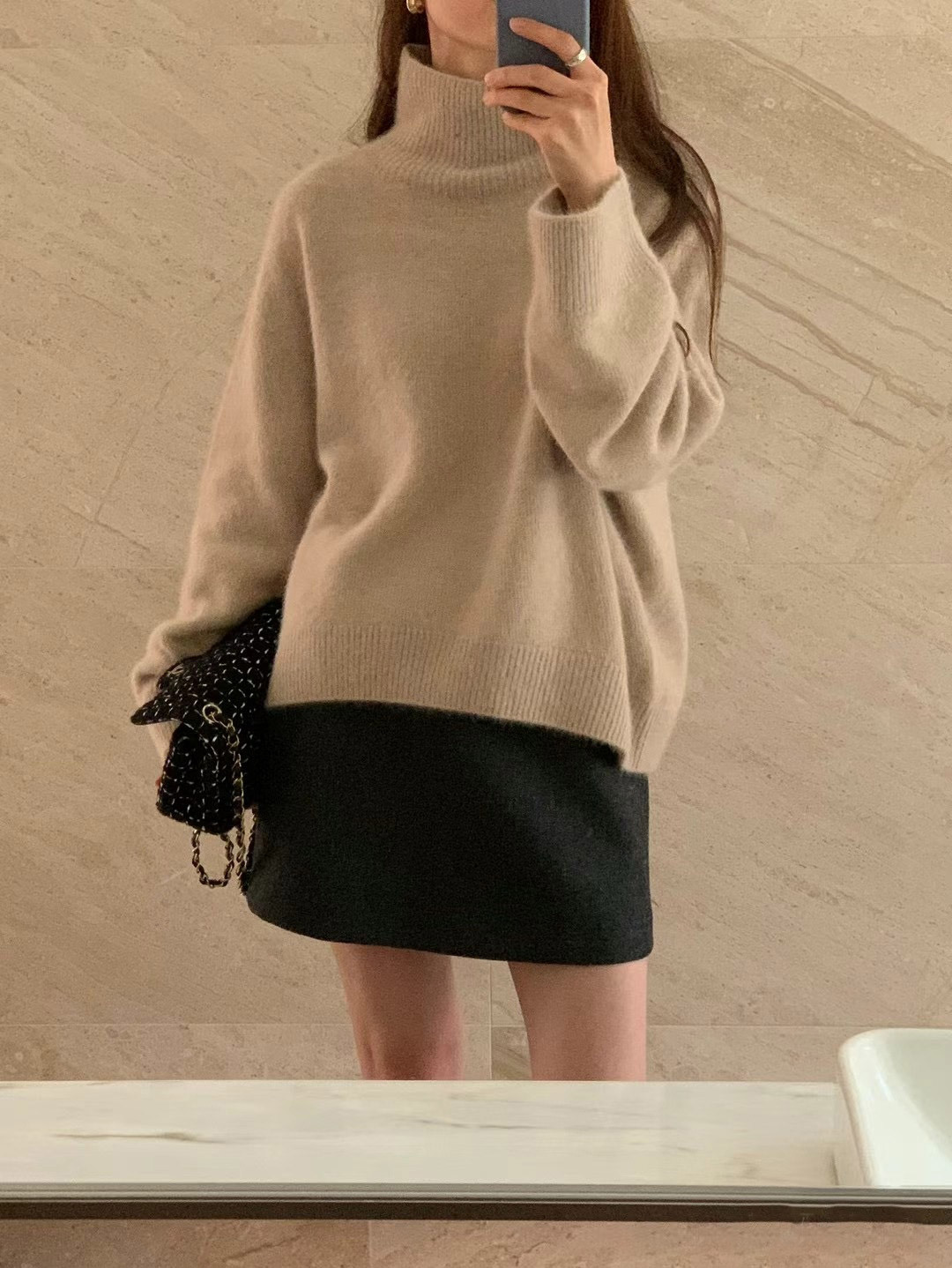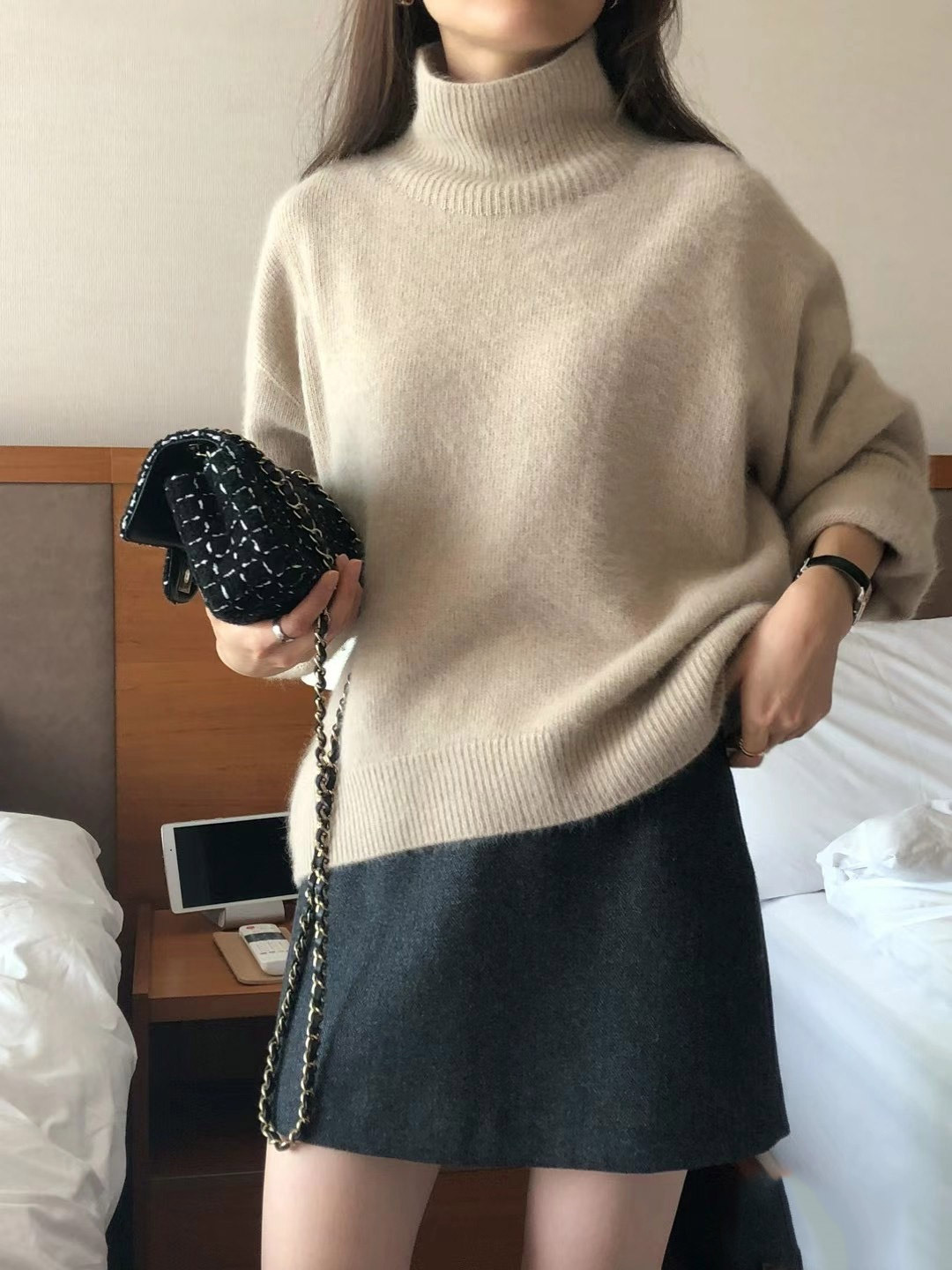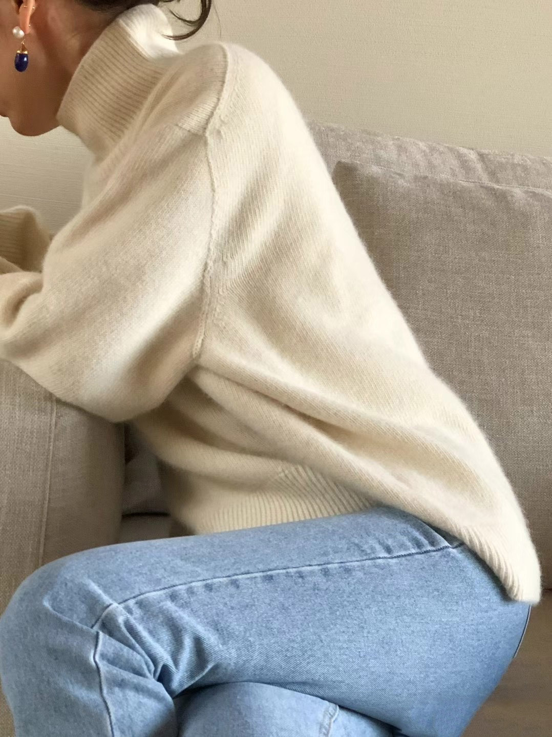 - Product Name: Solid color turtleneck loose wool knit style pullover long sleeve sweater woman