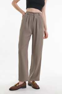 - Product Name: Tan Half Elastic Pleat Detail Wide Leg Suit Pants
